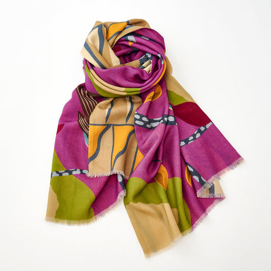 Superfine Merino Wool 'Pear Tree Avenue' pink 二重仕立てのロングストール