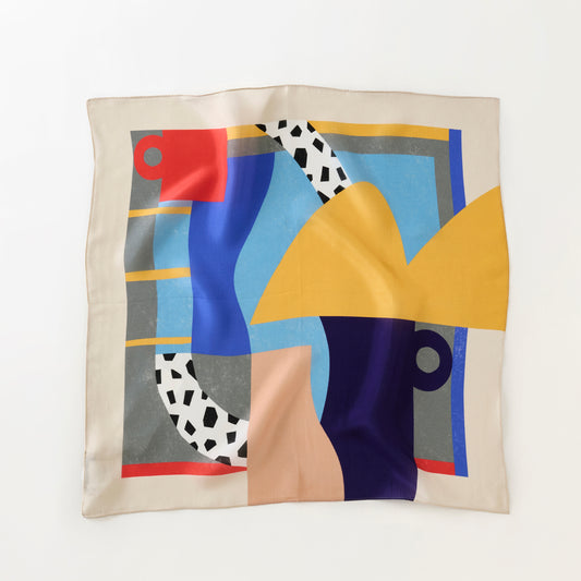 Silk & Merino Wool 'Girl's night out' blue x navy ループスカーフ