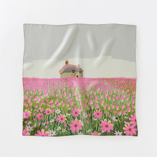 リング付き シルクのミニスカーフ 'Ladybird Cottage' pink