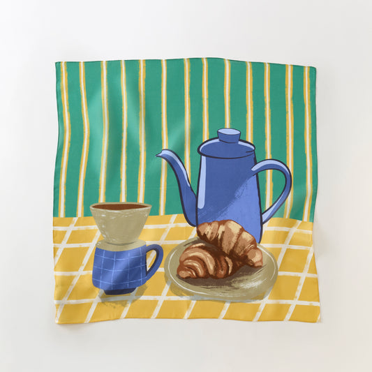 リング付き シルクのミニスカーフ 'Coffee & Croissants' red