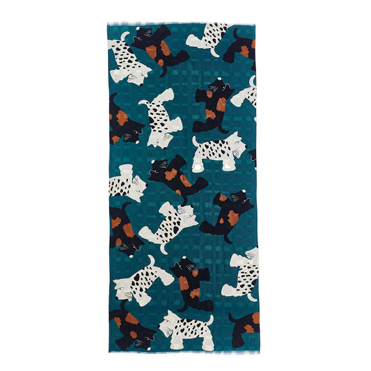 幅広タイプ Superfine Merino Wool 'Scotties' green 二重仕立てのロングストール