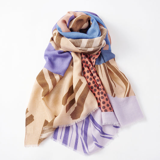 Superfine Merino Wool 'Feathers of a Partridge' purple 二重仕立てのロングストール