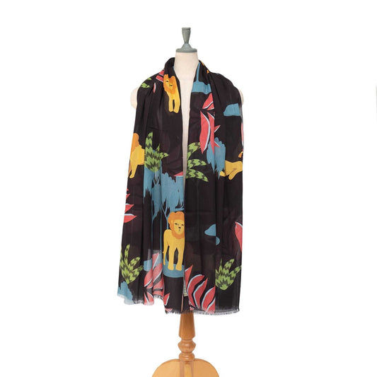 Japanese Printed Organic Cotton 'King of the Jungle' black ロングストール