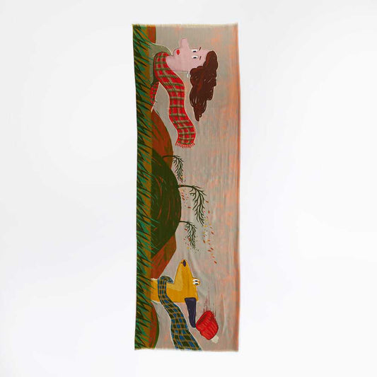 Superfine Merino Wool 'The Girl with a Polka Dot Umbrella' day 二重仕立てのロングストール