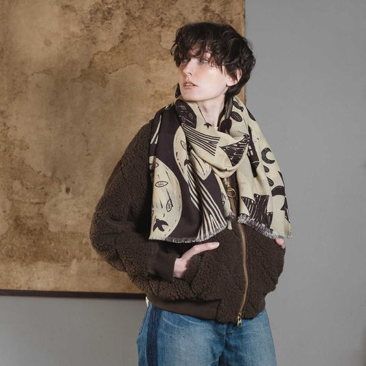 Japanese Merino Wool 'Moonrise Forest' 二重仕立てのロングストール