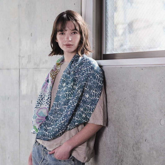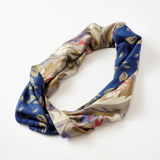 Silk & Merino Wool 'Girl's night out' blue x navy ループスカーフ
