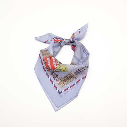 Silk 'Via London' sky blue リング付きミニスカーフ