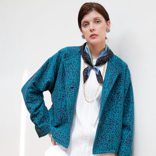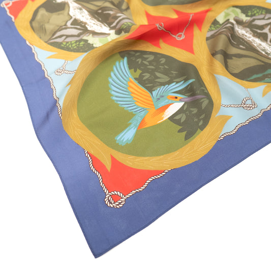 Silk 'Afternoon tea' blue&green リング付きミニスカーフ