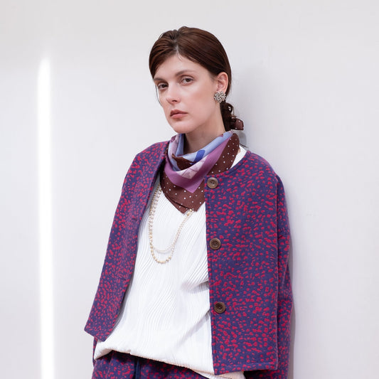 Silk 'Bluebells' brown/navy リング付きミニスカーフ