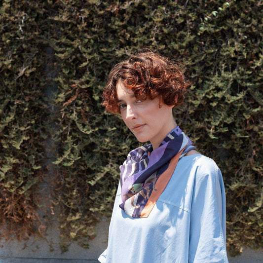 Japanese Printed Silk 'Tropics' Cream リング付きミニスカーフ | YARN&COPPER