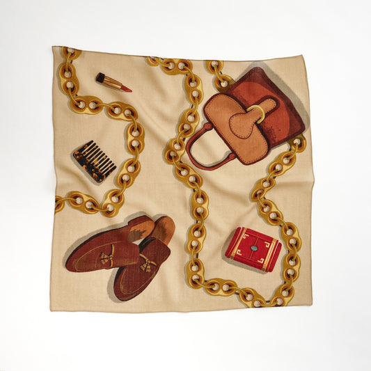 Silk 'Via London' beige リング付きミニスカーフ
