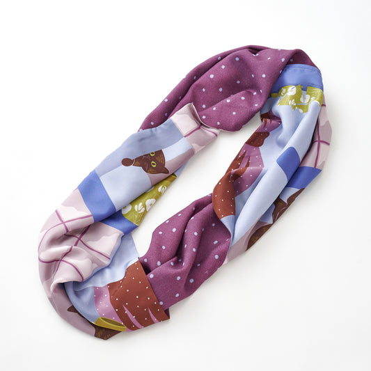 Silk 'Kingfisher' pink リング付きミニスカーフ