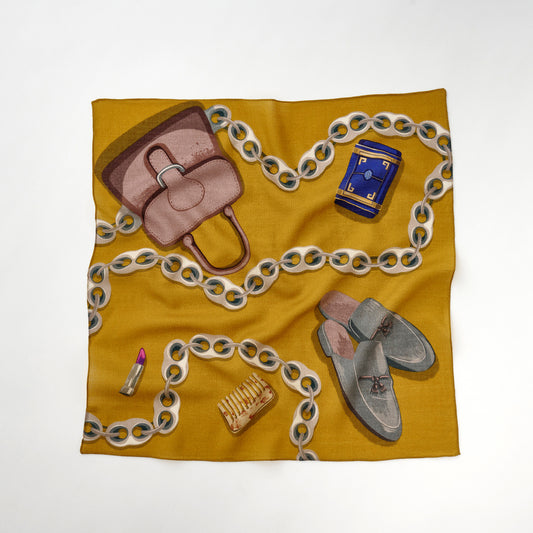 Silk & Merino Wool 'Mayfair Tweed' mustard ループスカーフ