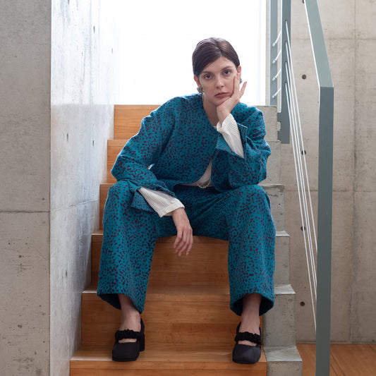 11月中旬入荷予定!播州織 Wool/Cotton イージーパンツ / blue green x purple