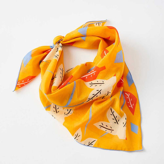 Japanese Printed Silk Cotton 'Flight Path' yellow スカーフリング付きミニスカーフ