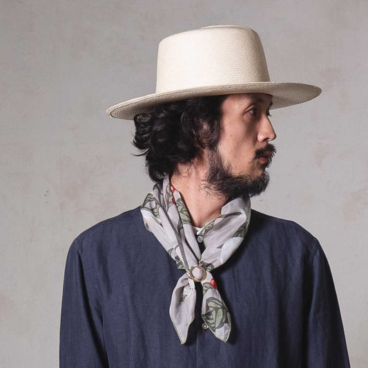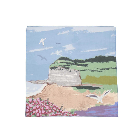 Silk Cotton 'Coastal Birds' スカーフリング付きミニスカーフ