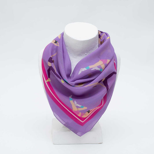 Japanese Printed Silk Cotton 'Work Out' pink purple スカーフリング付きミニスカーフ