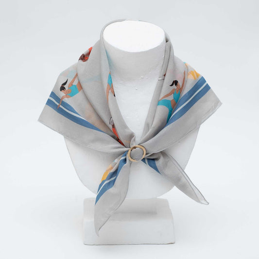 Japanese Printed Silk Cotton 'Work Out' grey スカーフリング付きミニスカーフ