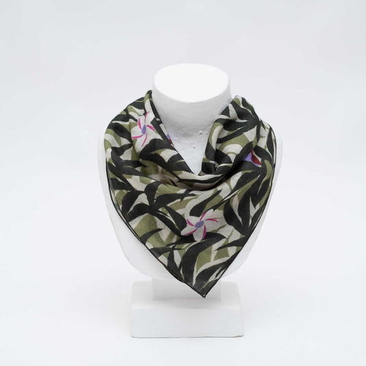 Japanese Organic cotton 'Hawaii' green リング付きミニスカーフ