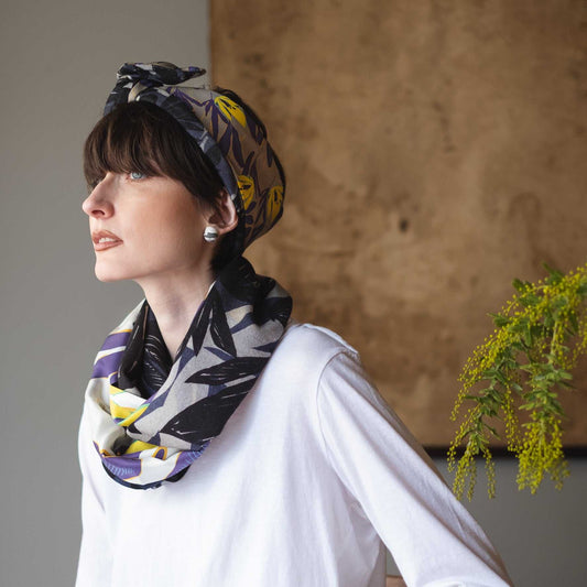 Silk ’Breakfast at Noon' Lemon リング付きミニスカーフ