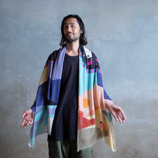 Japanese Printed Organic Cotton 'Epic Guitar Solo' ロングストール