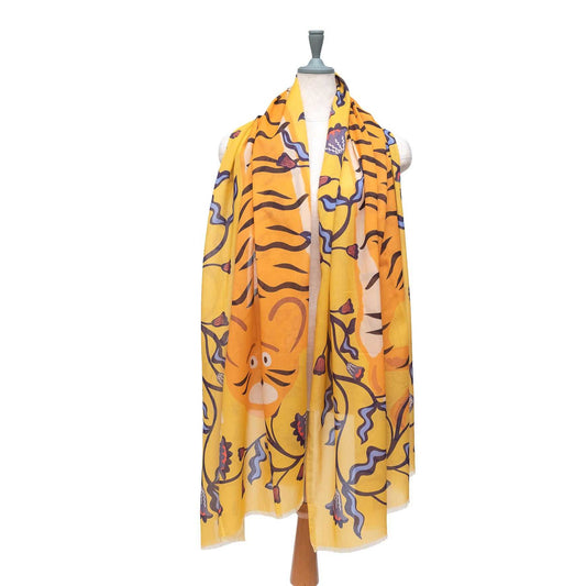 Japanese Printed Organic Cotton 'Bombay Tiger' banana yellow ロングストール