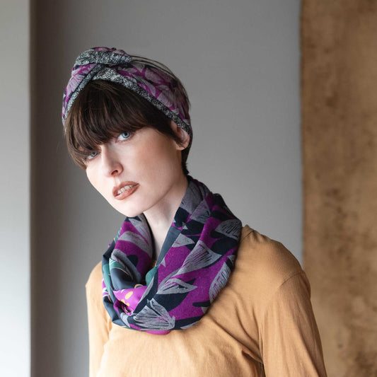 Silk & Merino Wool 'Salisbury' purple ループスカーフ