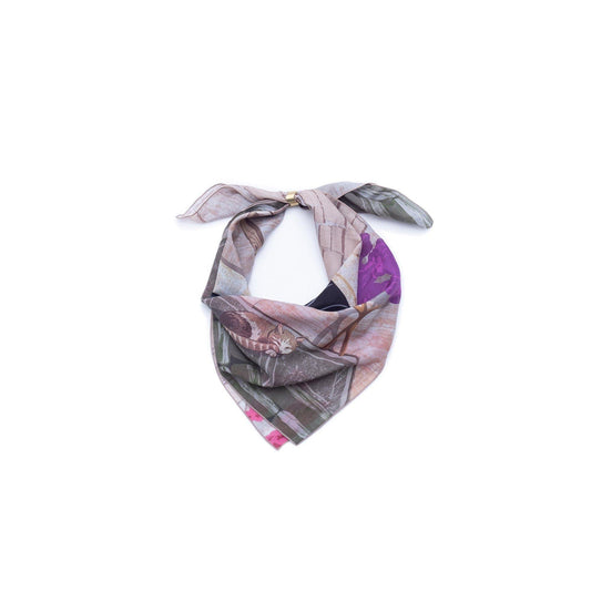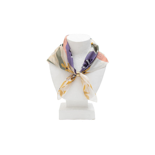 Japanese Printed Silk 'Tropics' Cream リング付きミニスカーフ | YARN&COPPER