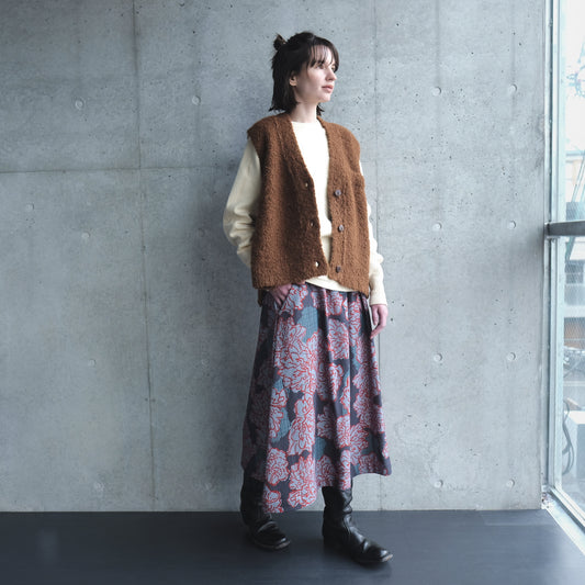 オーガニックコットンギャザースカート 'Preston Bloom' brown