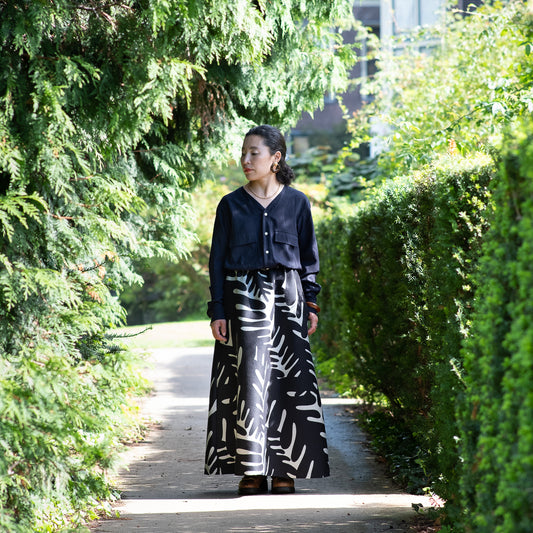 裏起毛 オーガニックコットンギャザースカート 'British Fern' black