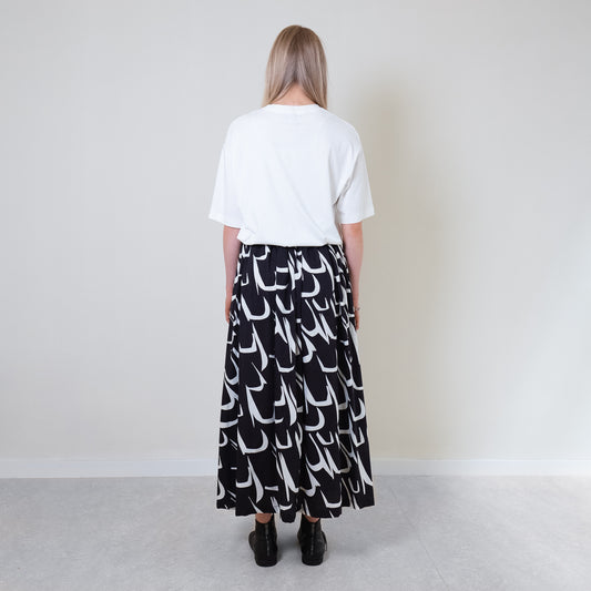 播州織 Wool/Cotton ジャガードロングスカート - black/light grey