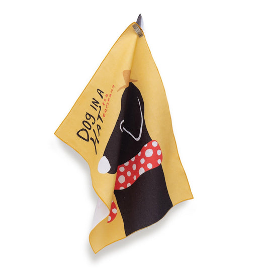 近江リネン キッチンタオル ’Dog in Hat Tea’ Yellow