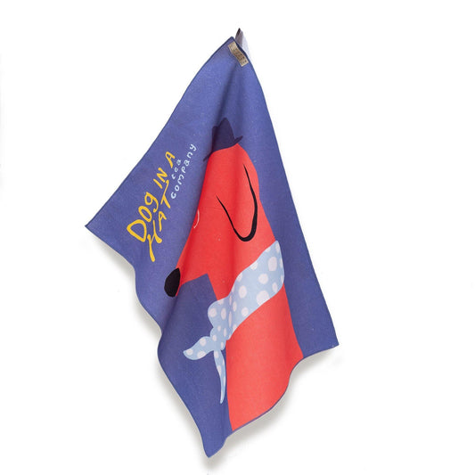 近江リネン キッチンタオル ’Dog in Hat Tea’ Navy