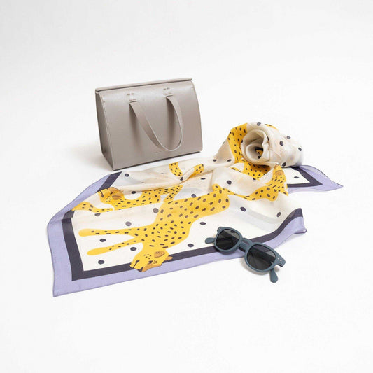 Japanese Printed Silk 'Chasing Leopards' Large scarf | YARN&COPPER