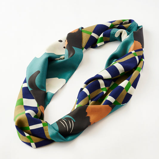 Silk & Merino Wool 'Scotties' green ループスカーフ