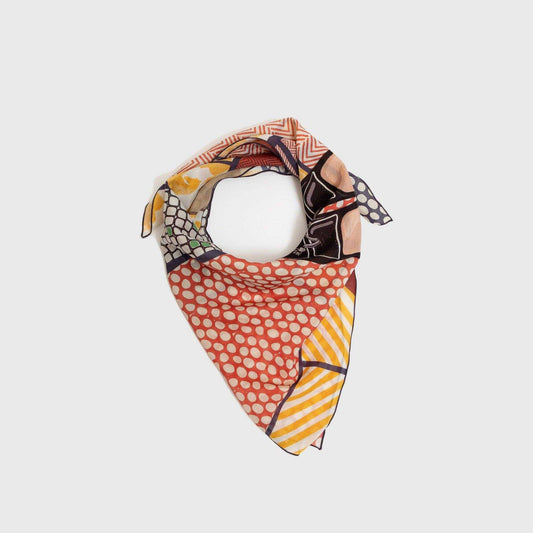 Japanese Printed Silk Cotton 'Bloomsberg' Beige Mini scarf with ring