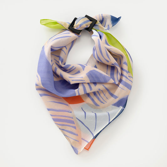 Japanese Printed Silk 'Polka Dot Queen' navy mini scarf with wave ring
