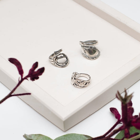 Silver Plated アンティークスプーンリング / イニシャル’F' 10号