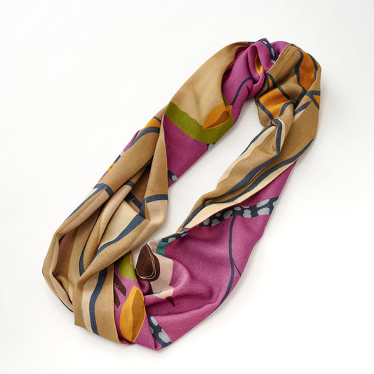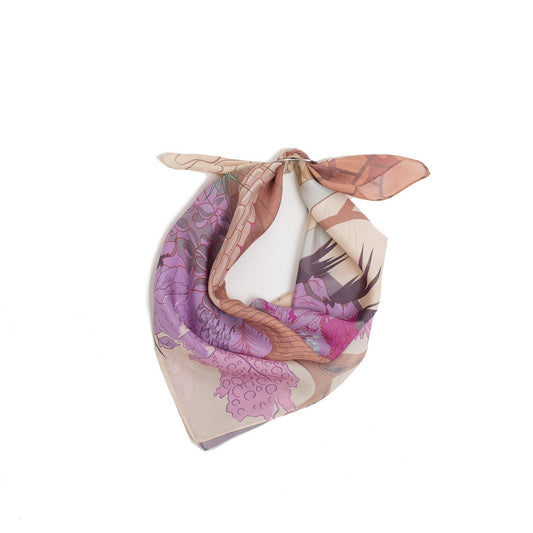 Japanese Printed Silk 'A Very English Garden' pink mini scarf with 8 rings