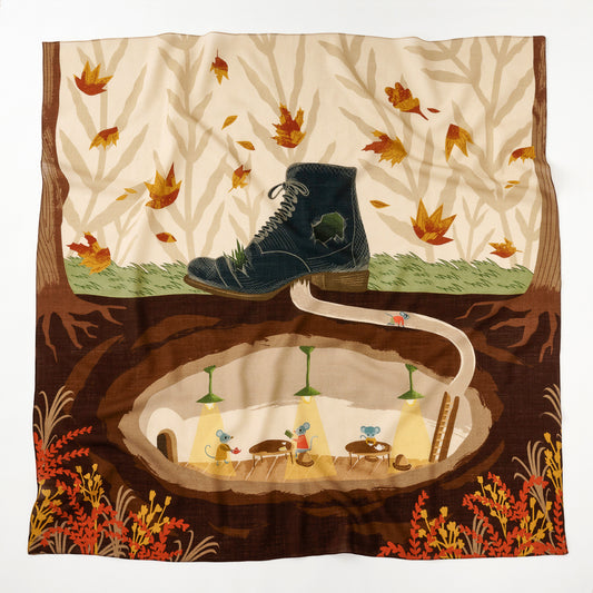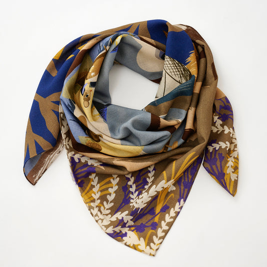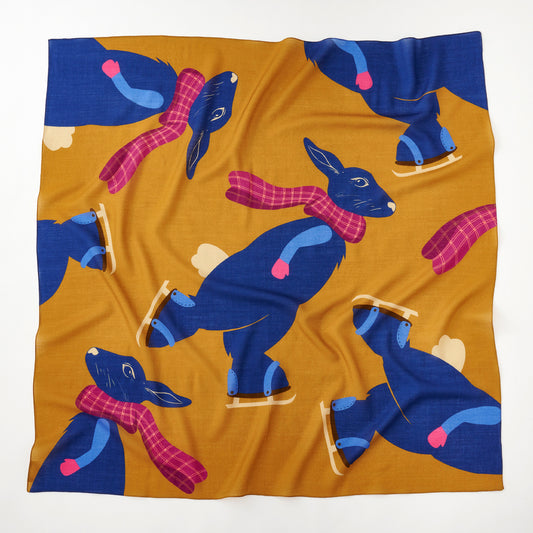 Japanese Merino Wool 'Mysterious Cats' Pink Square Scarf