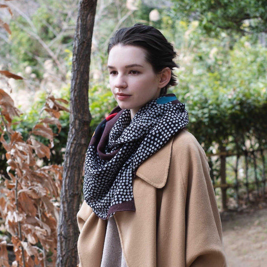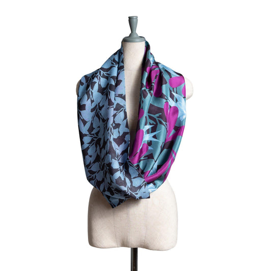 Japanese Printed Silk & Merino Wool 'Friday Night' loop scarf