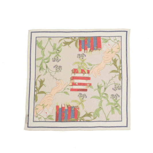 Japanese Printed Organic cotton 'A Shakespearean dream' cream mini scarf with ring