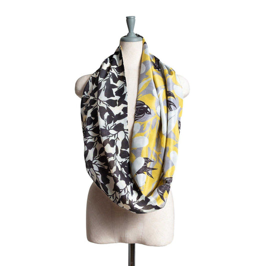 Japanese Printed Silk & Merino Wool 'Cresent Avenue' Yellow Loop Scarf