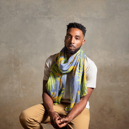 Restock! Omi Linen Japanese Linen 'Chasing Leopards' Blue long stole