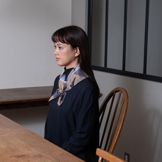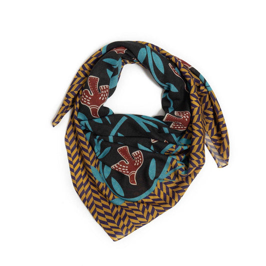 Japanese Merino Wool 'Running Hens' brown square scarf | YARN&COPPER