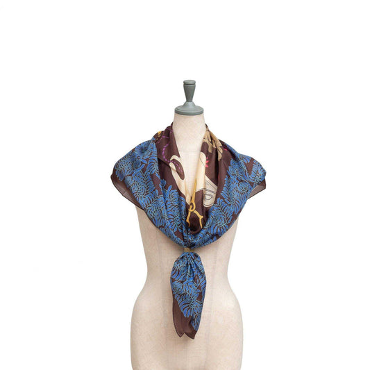 Japanese Printed Silk 'The Weaver's tale' dark brown large scarf