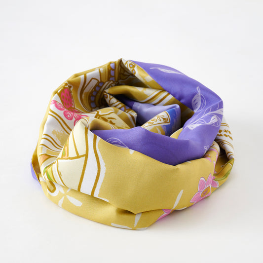Japanese Printed Silk Cotton 'Rotherhithe' Purple Large Scarf