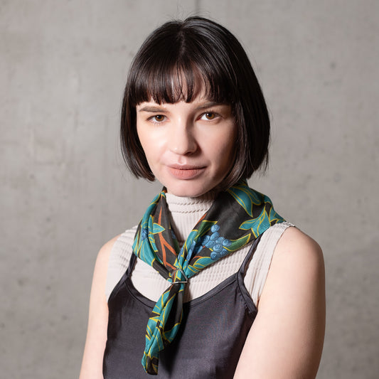 9月中〜下旬入荷!Silk Cotton 'Blueberries' black リング付きミニスカーフ