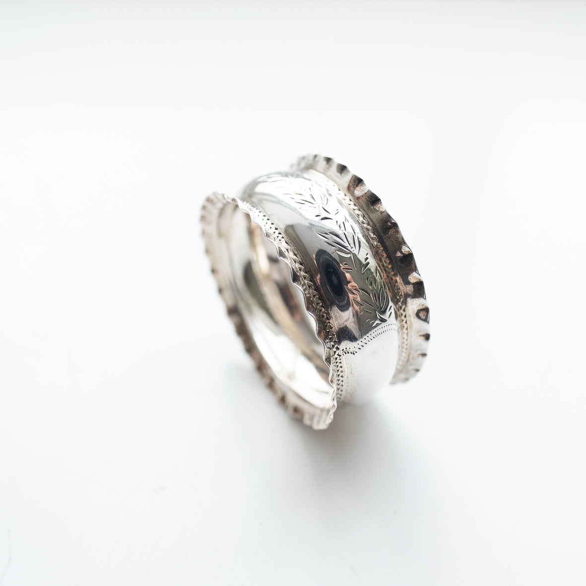 A classic and beautiful ring delicately engraved with a floral and leaf motif.