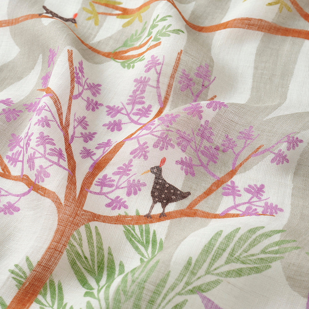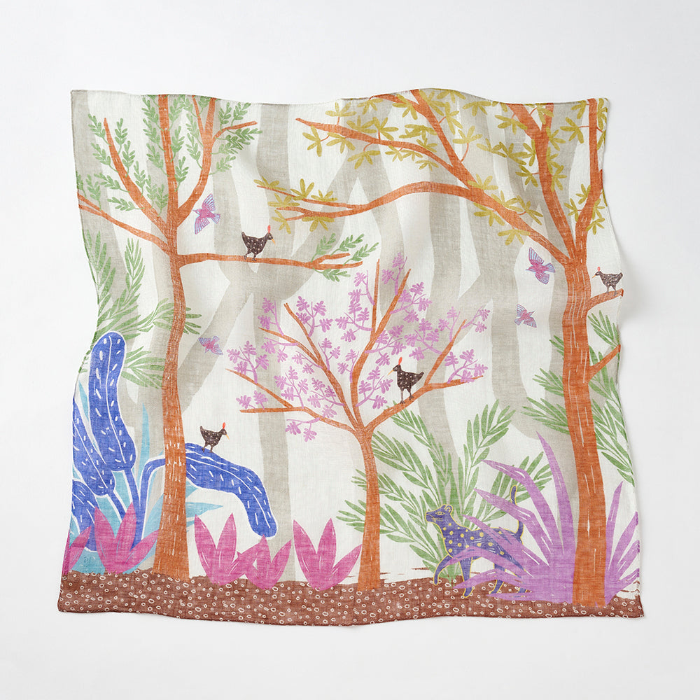 Just as dawn breaks in 'Monsoon Forest' there is a flurry of activity. The forest is a thriving mixture of animals and plants, all brightly coloured and playful. The art style gives the design a textured look with tropical leaves and exotic birds.